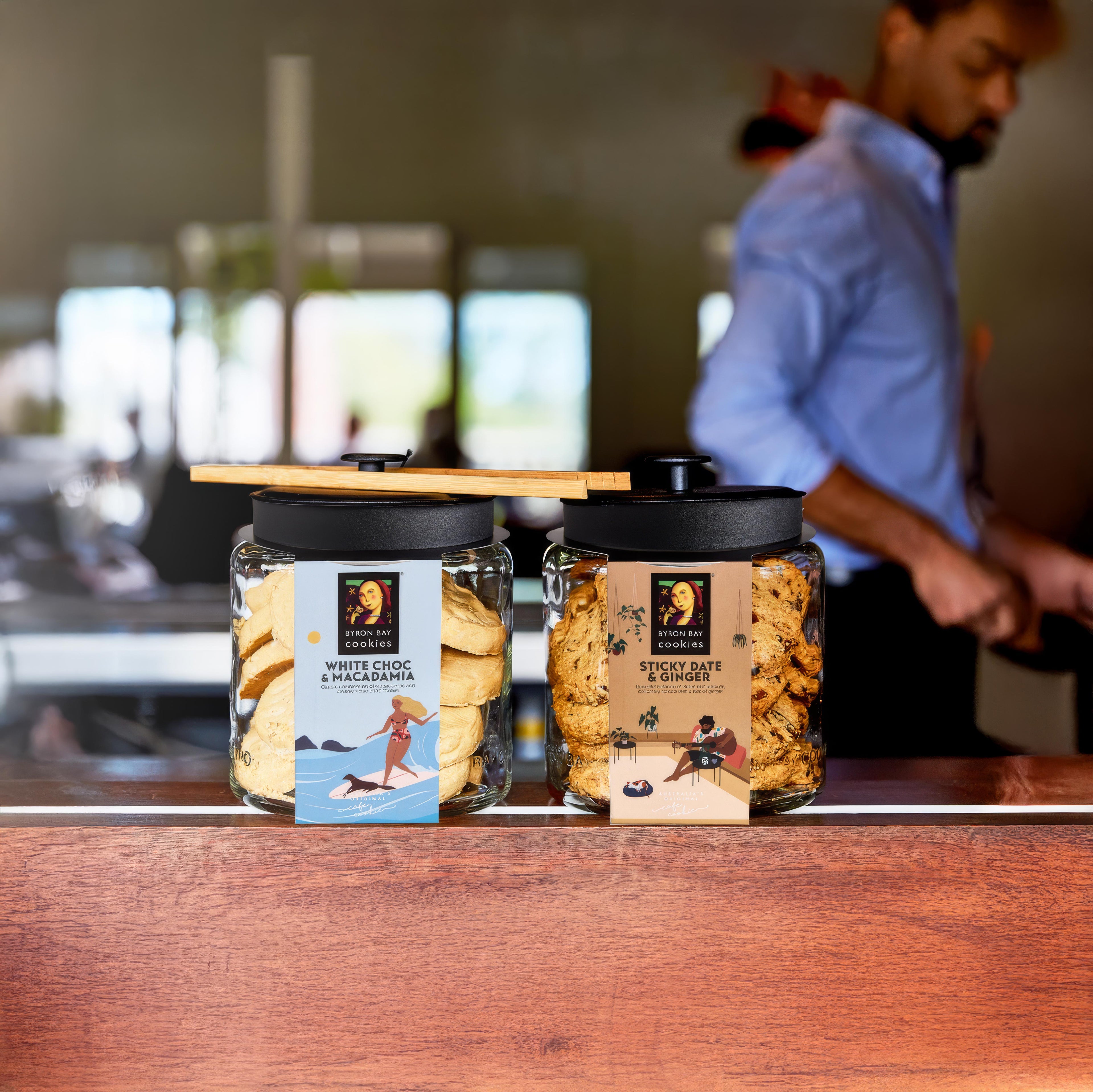 Known as Australia's Original Cafe Cookie, Byron Bay Cookies' iconic glass jars have been a staple on cafe counters for over 35 years. No wonder customers ask for them by name!