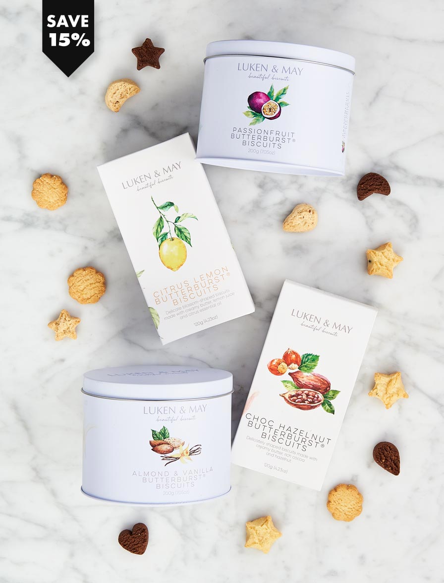 With elegant packaging and sophisticated flavours, Luken & May is the biscuit of choice when entertaining guests, gifting someone special or treating yourself.
