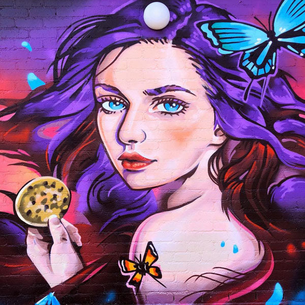 Renown local artist Davey Mac aka Teazer was commissioned to create a large-scale mural with custom graffiti art on the side of our Gift Shop in the Industrial Estate. You can’t miss it when coming into Byron on Ewingsdale Road. Worth the pit stop!